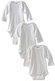 Gerber Unisex-Baby Newborn 3 Pack Longsleeve Onesie, White, 3-6 Months
